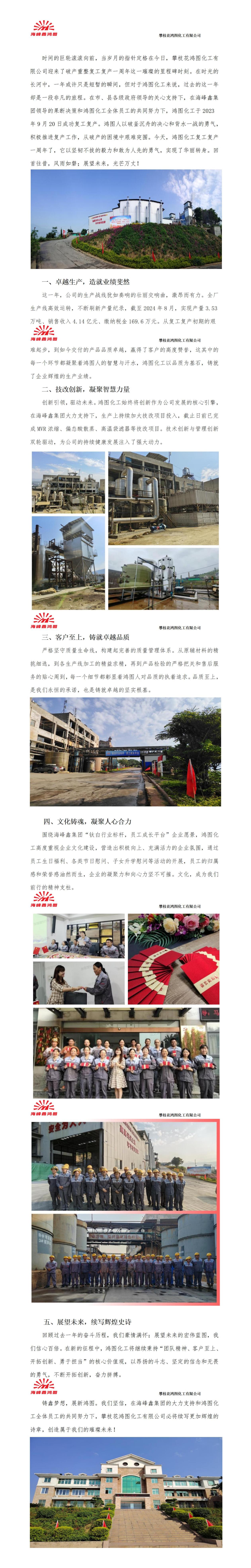 【新聞】破繭重生展新翼,砥礪前行譜華章——鴻圖化工復(fù)工復(fù)產(chǎn)周年記